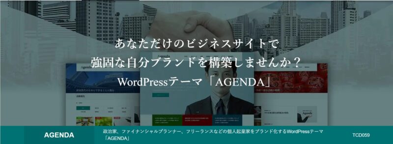 AGENDAは、企業・団体・士業・政治家など“信頼性”が重要なウェブサイトに最適なWordPressテーマです。