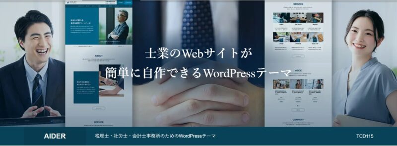 AIDERは、税理士・会計士・社労士など“士業”をはじめとする専門事務所のホームページ構築に特化した WordPress テーマです。