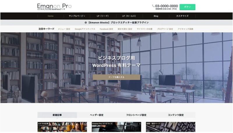 Emanon Proは、企業サイト/ブログ/ネットショップを一枚で扱える日本語対応のビジネス向けWordPressテーマです。
