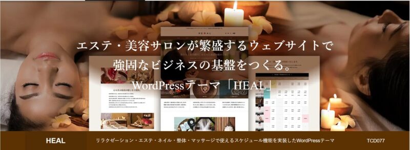 HEAL は、エステサロン・ネイルサロン・マッサージ・リラクゼーション施設といったサービス業に向けて設計された WordPress テーマです。